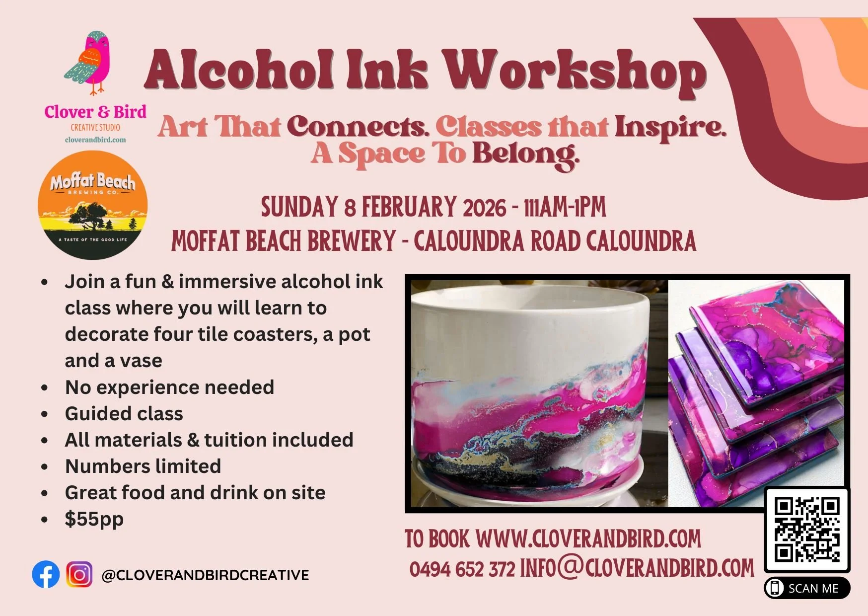 If you’re craving colour, creativity and a seriously fun Sunday session, this workshop is calling your name. Dive into the magical world of alcohol inks and create your own vibrant masterpieces: